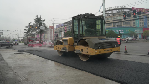 城市另一頭,迎賓大道升騰著熱氣,瀝青運料車和壓路機(jī)正熱火朝天地打著配合,進(jìn)行著瀝青攤鋪工作。經(jīng)過數(shù)月的布管、回填,這條道路的雨污分流施工已接近尾聲。