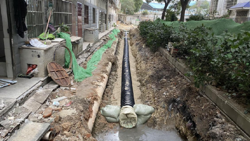 在位于東風(fēng)湖流域的天潤化工小區(qū),工人們正在鋪設(shè)雨水管道和污水管道,控制污染源頭。雨污分流后,污水流入即將移交給三峽集團(tuán)運(yùn)營的馬壕污水處理廠,屆時(shí)的污水進(jìn)廠BOD濃度,將比管網(wǎng)完善前提升約30%,污水收集率明顯提高。
