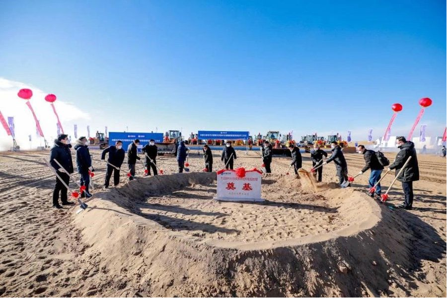 內(nèi)蒙古庫布齊沙漠鄂爾多斯中北部新能源基地項(xiàng)目開工現(xiàn)場(三峽能源供圖)