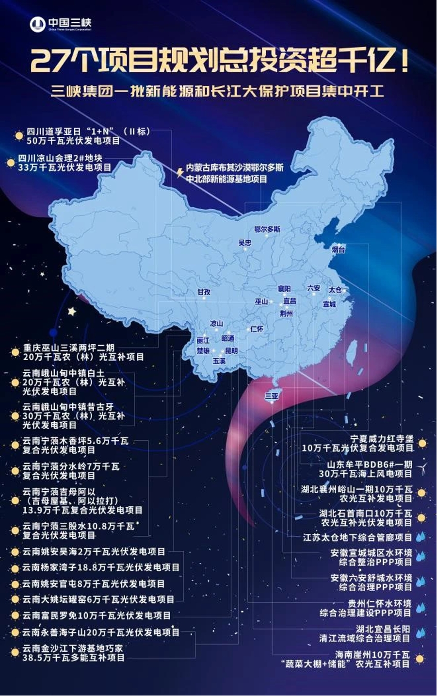 27個(gè)項(xiàng)目規(guī)劃總投資超千億!三峽集團(tuán)一批新能源和長江大保護(hù)項(xiàng)目集中開工