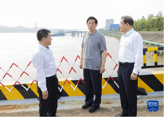 6月30日至7月4日,中共中央政治局常委、全國人大常委會委員長栗戰(zhàn)書率全國人大常委會執(zhí)法檢查組在湖北檢查長江保護法實施情況。這是7月3日,栗戰(zhàn)書在漢口江灘碼頭考察長江大保護工作情況。新華社記者 黃敬文 攝