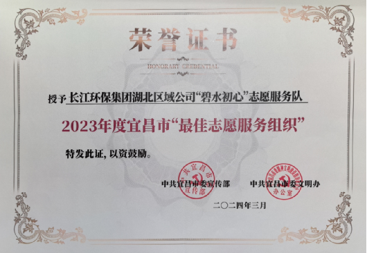 近日,三峽集團(tuán)所屬長(zhǎng)江環(huán)保集團(tuán)湖北區(qū)域公司“碧水初心”志愿服務(wù)隊(duì)在宜昌市2023年度雷鋒志愿服務(wù)先進(jìn)典型表彰評(píng)選中脫穎而出,榮獲“宜昌市2023年度最佳志愿服務(wù)組織”。