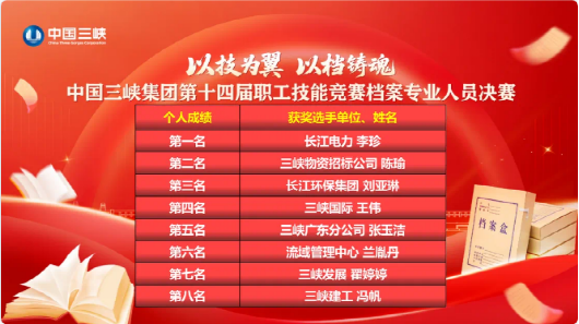 本網(wǎng)訊(吳茜)7月4日,集團(tuán)公司第十四屆職工技能競賽檔案專業(yè)人員決賽在湖北武漢圓滿落幕,長江環(huán)保集團(tuán)參賽選手憑借扎實的專業(yè)技能和精彩的現(xiàn)場表現(xiàn),在競賽中脫穎而出。其中,安徽區(qū)域公司劉亞琳獲得競賽個人第三名,并將被授予“中國三峽集團(tuán)技術(shù)能手”“中國三峽集團(tuán)青年崗位能手”稱號;江西區(qū)域公司湯玉玉和安徽區(qū)域公司劉亞琳所在參賽隊伍,在“請聽檔案說”團(tuán)體競賽環(huán)節(jié)排名第一,獲得“最佳展示獎”。