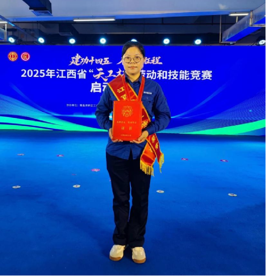 在2024年江西省“天工杯”長江大保護勞動和技能競賽中,胡孝備參加了水質(zhì)檢測項目。在理論考核和實操檢測兩個環(huán)節(jié)中,她憑借扎實的專業(yè)功底和出色的臨場發(fā)揮,從全省眾多選手中脫穎而出,以水質(zhì)化驗檢測項目總分第一的好成績摘得桂冠。因成績優(yōu)異,胡孝備被江西省總工會授予2024年“天工杯工匠”榮譽稱號。